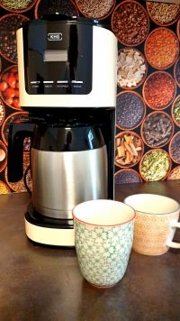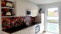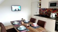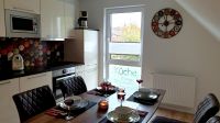 mit Küchenzeile (Kaffeemaschine mit Theromoskanne, Kapsel-Kaffeemaschine für die Tasse Kaffee zwischendurch, Backofen, Cerankochfeld, Mikrowelle, Spülmaschine, Wasserkocher, Toaster uvm.). Esstisch für 4 Personen sowie TV-Wand-Flachbildschirmfernseher.