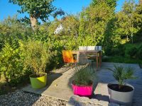große Terrasse 20 m² mit Feuerstelle und Grill